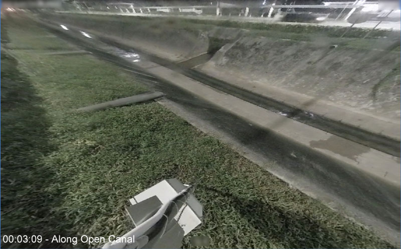Along open canal at midnight